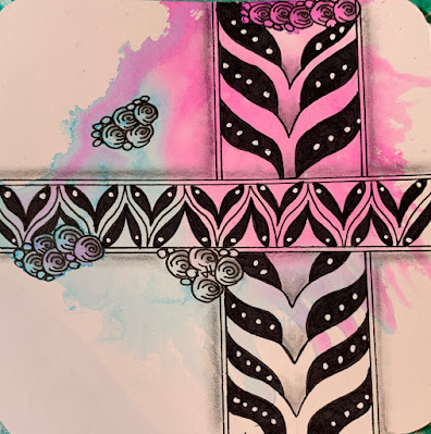 October 1: tangle is Jester from Marie Browning. I added zingers and tipple. All the tiles I am using this month were cut from either Bristol Illustrated paper or Harmony Hot Pressed Watercolor paper - both from Hahnemühle.